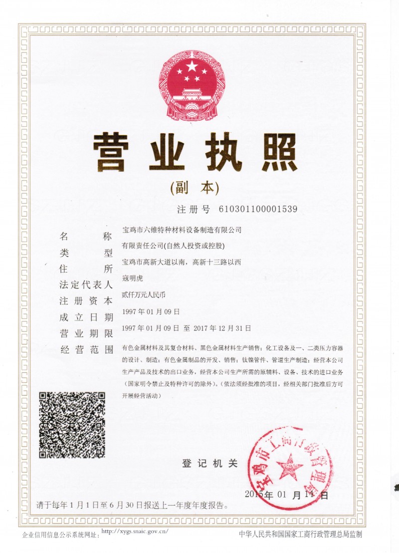 » 寶雞市六維特種材料設備制造有限公司 »資質證書