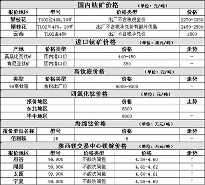 2月25日鈦市場參考價格